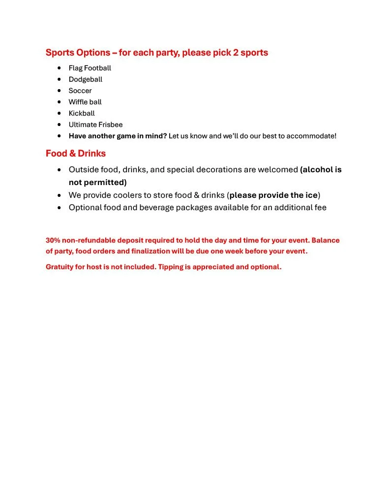 For Birthday Party Inquiries Name * First Name Last Name Phone * (###) ### #### Email * Message * Thank you!